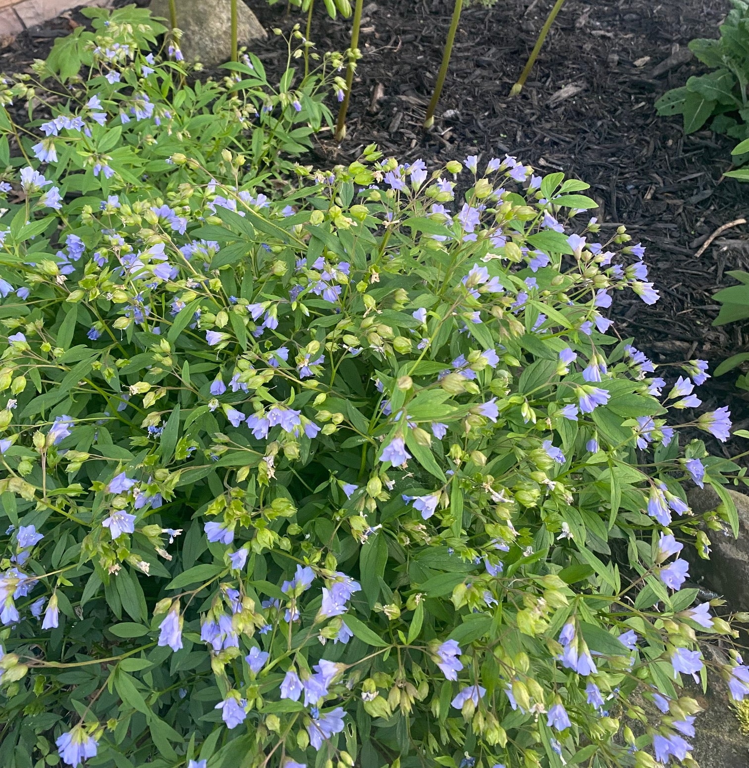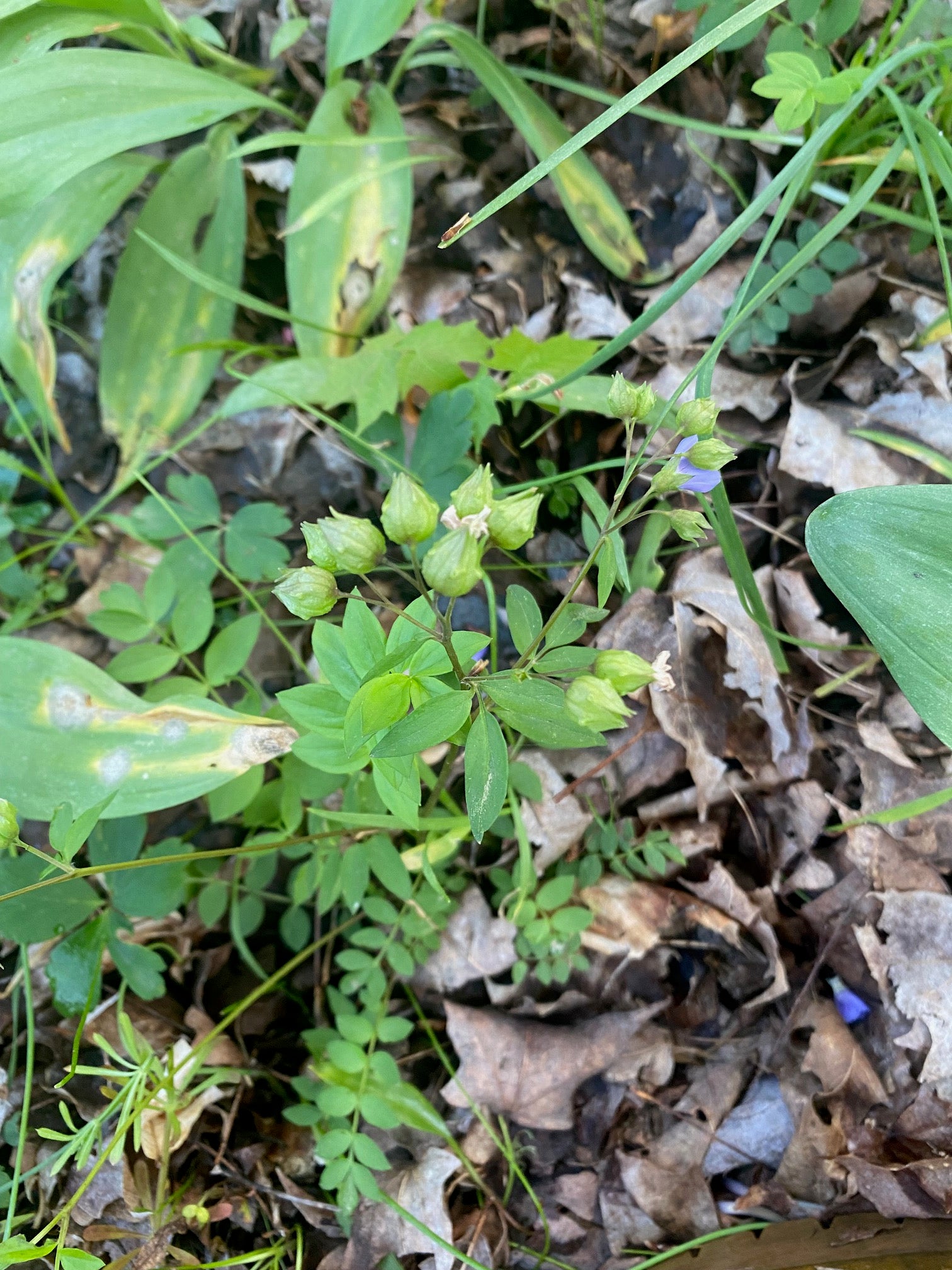 Polemonium reptans, commonly called Jacob’s Ladder, is a graceful native woodland perennial that adds charm and early-season color to shaded gardens. From mid to late spring, clusters of delicate, bell-shaped flowers in shades of soft blue to lavender rise above a mound of lush, ladder-like foliage, whose pinnate leaflets give the plant its name. Its airy blossoms sway gently in the breeze, lending a natural elegance to shady plantings.